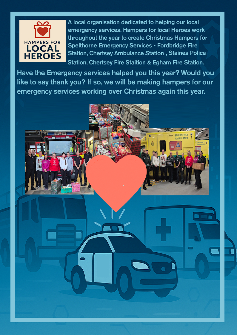 Hampers for local Heroes work throughout the year to create Christmas Hampers for Spelthorne Emergency Services: